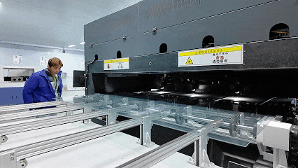 在全自动冲减复合机前,长江电气智造公司总裁黄飞宁介绍,该产线未改造前,仅折弯工序就需要30余名工人三班倒。实施智能化改造后,折弯机器人能够自动定位并快速精准抓取板材,加工精度高、产品质量好,可实现一天24小时不间断生产,并只需要一名工程师维护。