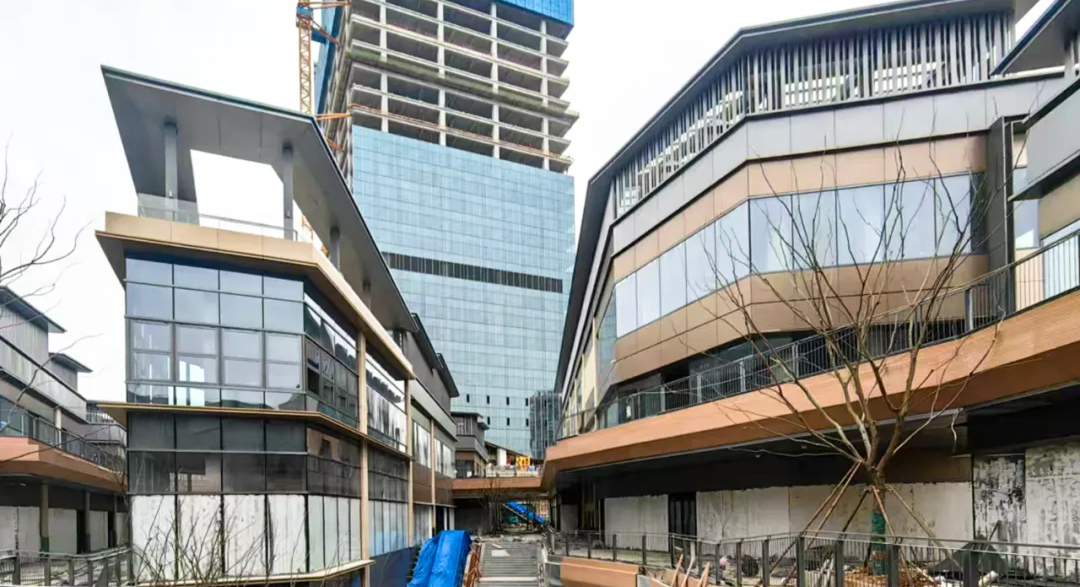 目前,商业街区已进入竣工状态,办公楼已基本完成主体建设,预计同期竣工交付。配套的绿化公园已完成土方回填,整体施工进度已达80%。