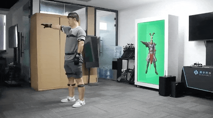 灏存科技技术人员借助可穿戴设备,操控虚拟人物做动作