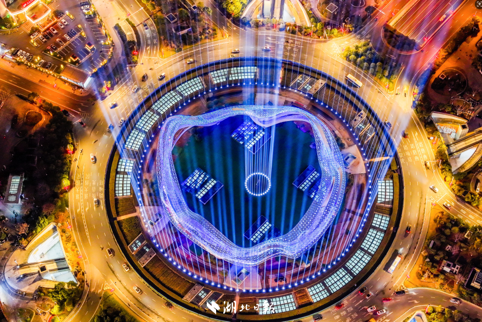 2025央视春晚一开场光谷广场极富科技感的灯光秀迅速火出圈,被网友形象称为“行星发动机”
