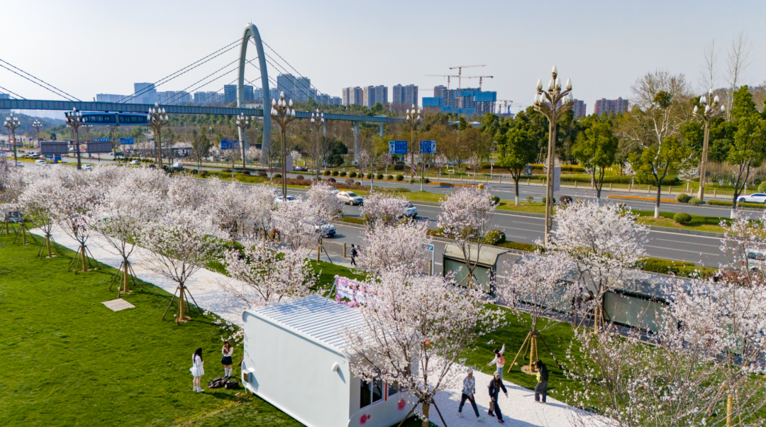 今年,高新大道沿线及各地铁站点新栽樱花树近1800株,加上以往种植的,全线樱花树合计超两千株。其中,中央生态大走廊、西苑公园、九峰溪公园等重要节点,成为赏樱好去处。