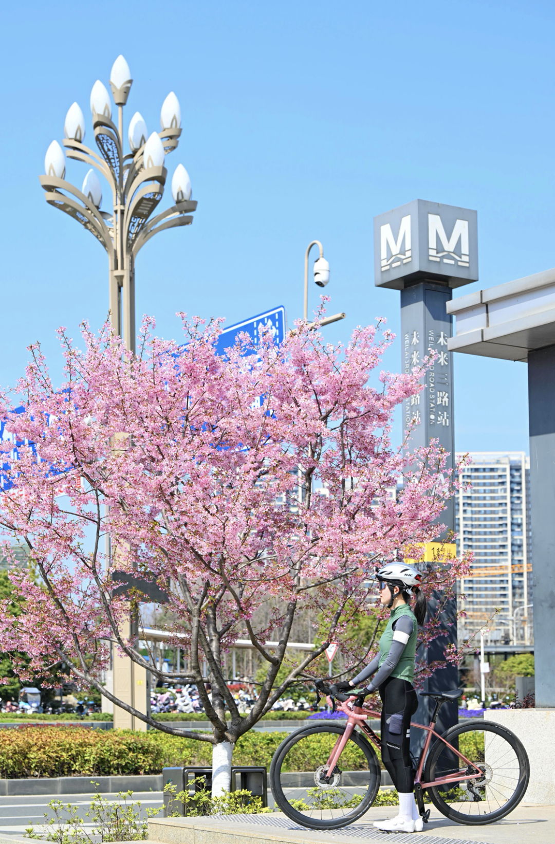 高新大道沿线的地铁站点同样成为樱花季焦点。被樱花环绕的未来三路地铁站出口栽植有飞寒樱83株、染井吉野44株。从地铁口走上来,如同遁入粉色云霞中,这处站点也被网友誉为“武汉最美樱花地铁站”。