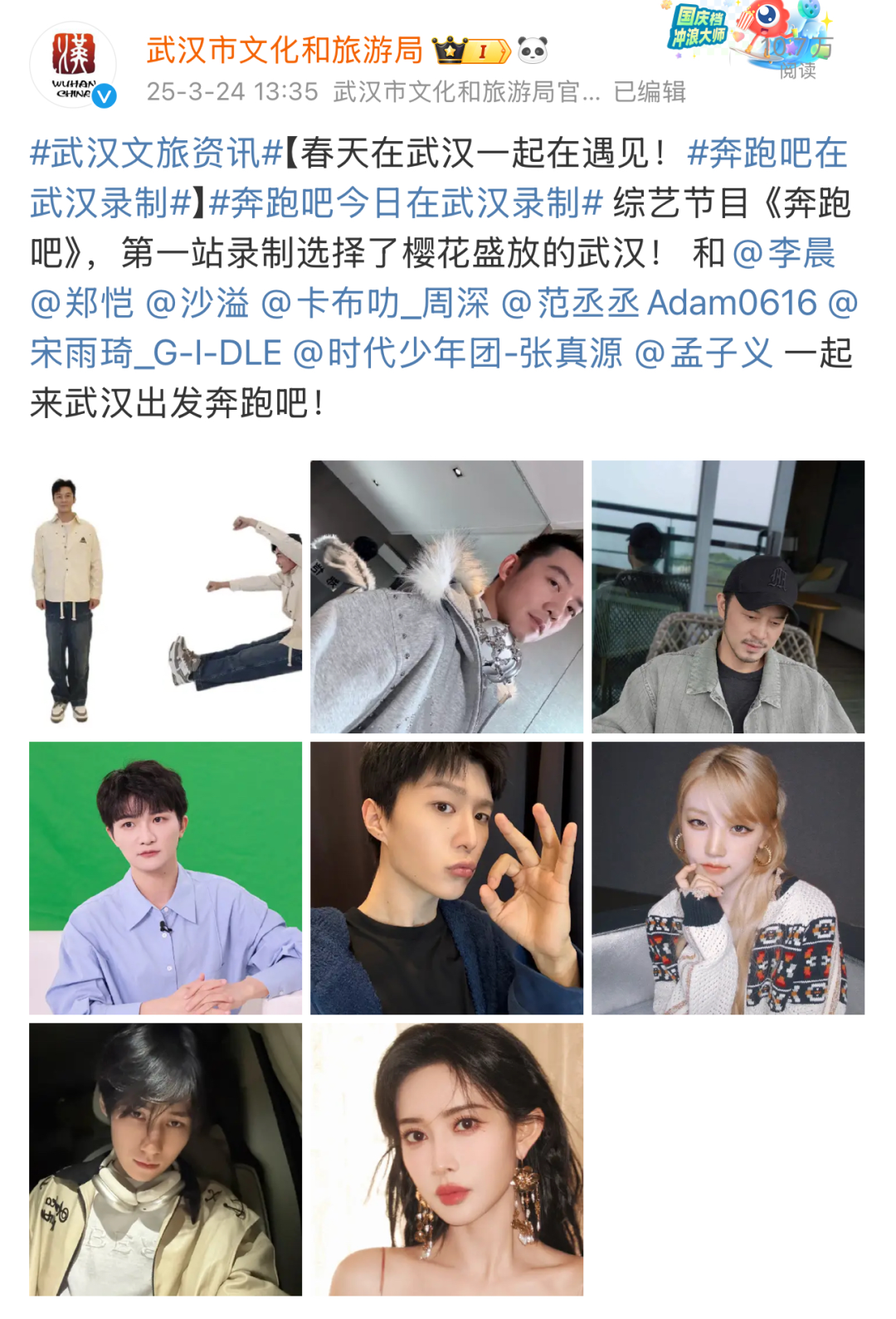 还有周传雄、张韶涵、蔡卓妍、王赫野以飞行嘉宾身份,参与《奔跑吧13》武汉场录制,敬请期待节目播出。