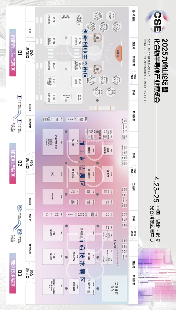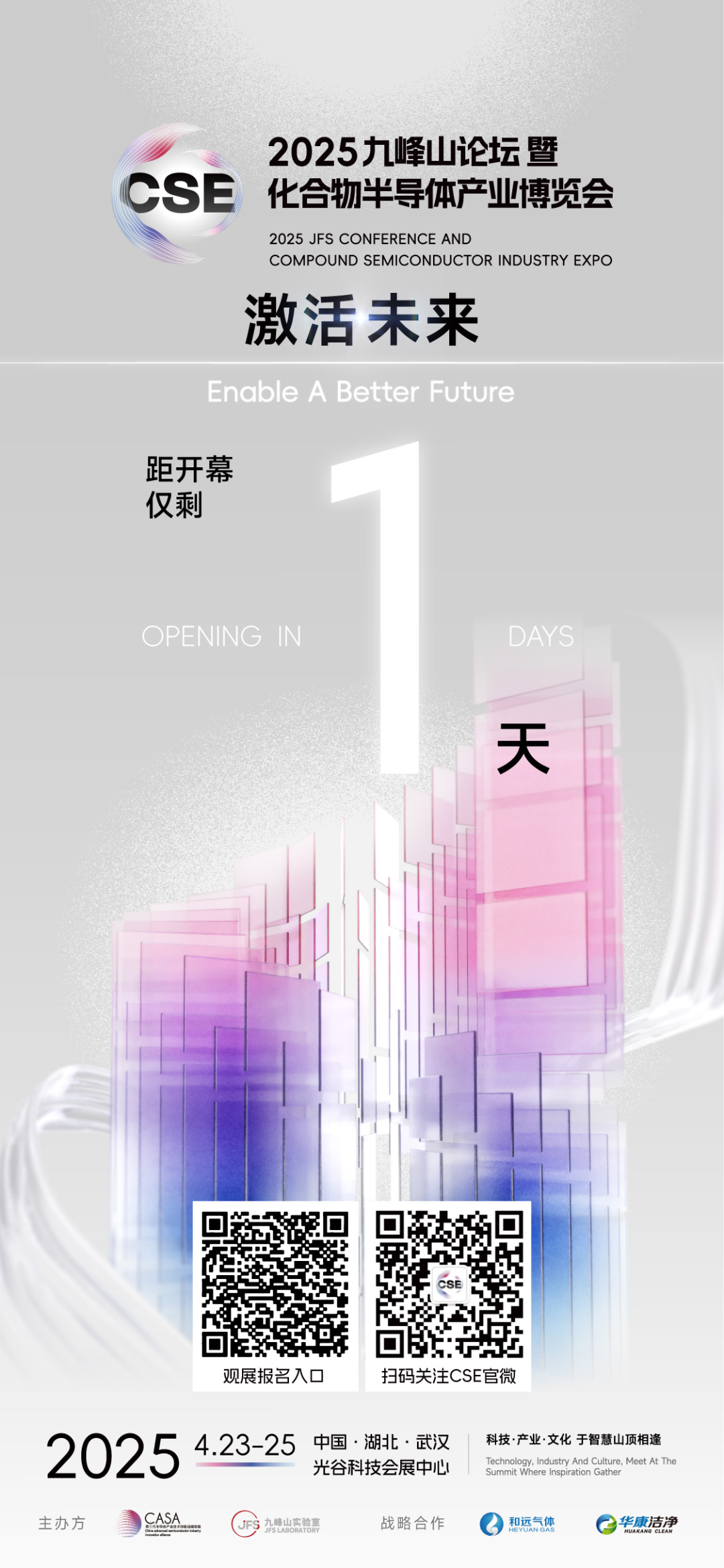 4月23-25日,2025九峰山论坛暨化合物半导体产业博览会(2025JFSC&CSE)将在中国光谷科技会展中心举行。30+重磅论坛活动,200+报告嘉宾,近300家展商齐聚CSE,万人齐聚光谷!