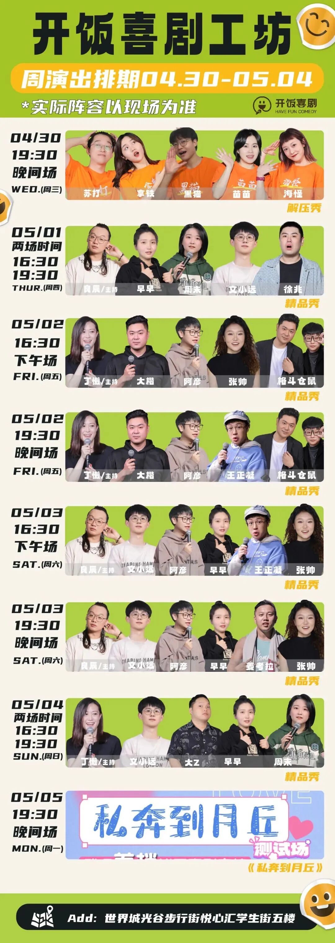 ????购票方式:0攻略懒人福音!五一演出开饭给您准备好啦!可通过微信搜索“武汉开饭喜剧”小程序提前购票,一步到位~