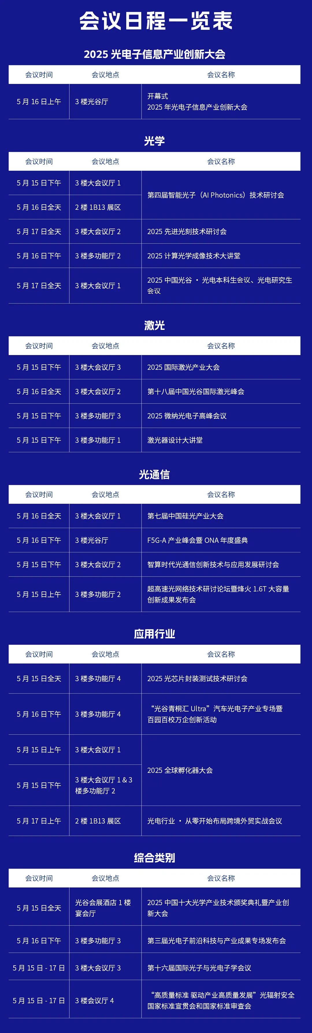 目前,20+同期重磅会议的观众报名通道已经全面开启,诚邀光电同仁共赏这场光电领域顶级思想盛宴。各个行业会议、产业大会的报名通道汇总如下: