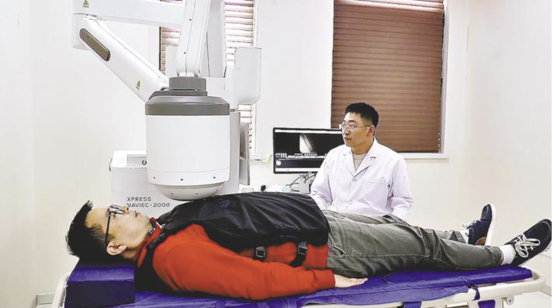 受检者正在接受安翰科技新品——智能模块化磁控胶囊内窥镜系统检查