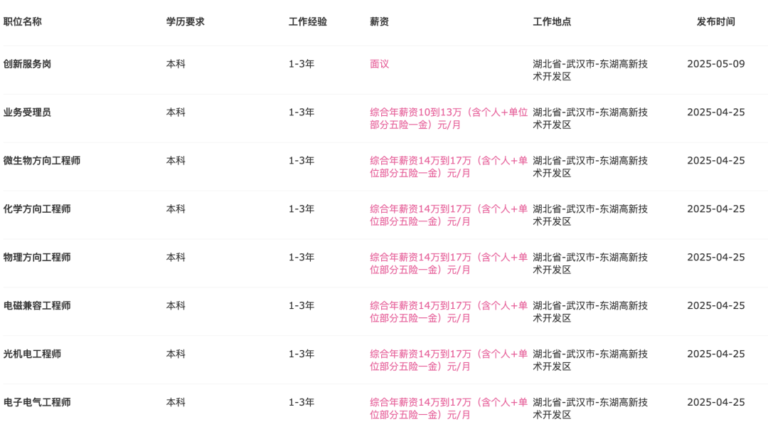 1.电磁兼容工程师、电子电气工程师、业务受理员、创新服务岗。