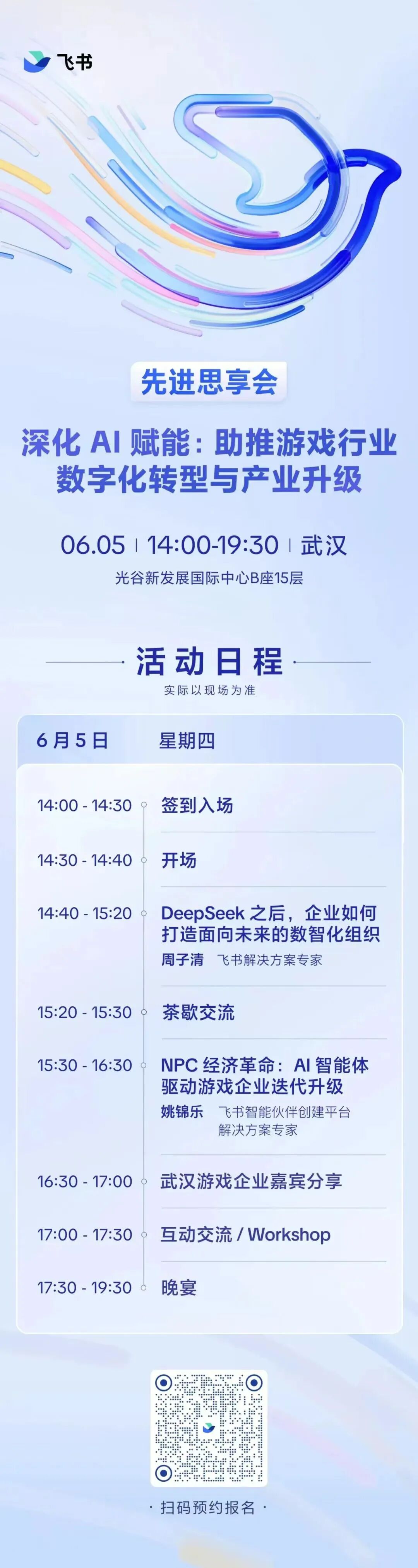 邀请飞书解决方案专家与多家游戏企业分享交流AI智能体如何驱动游戏企业迭代升级,以及企业如何打造面向未来的数智化组织。