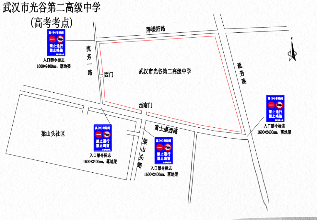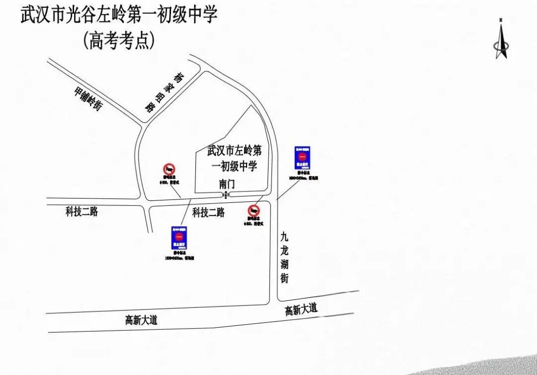 ????停车提示:接、送考车辆在学校门前上下客后可在光谷二路管制区域以外两侧单排顺向停放。
