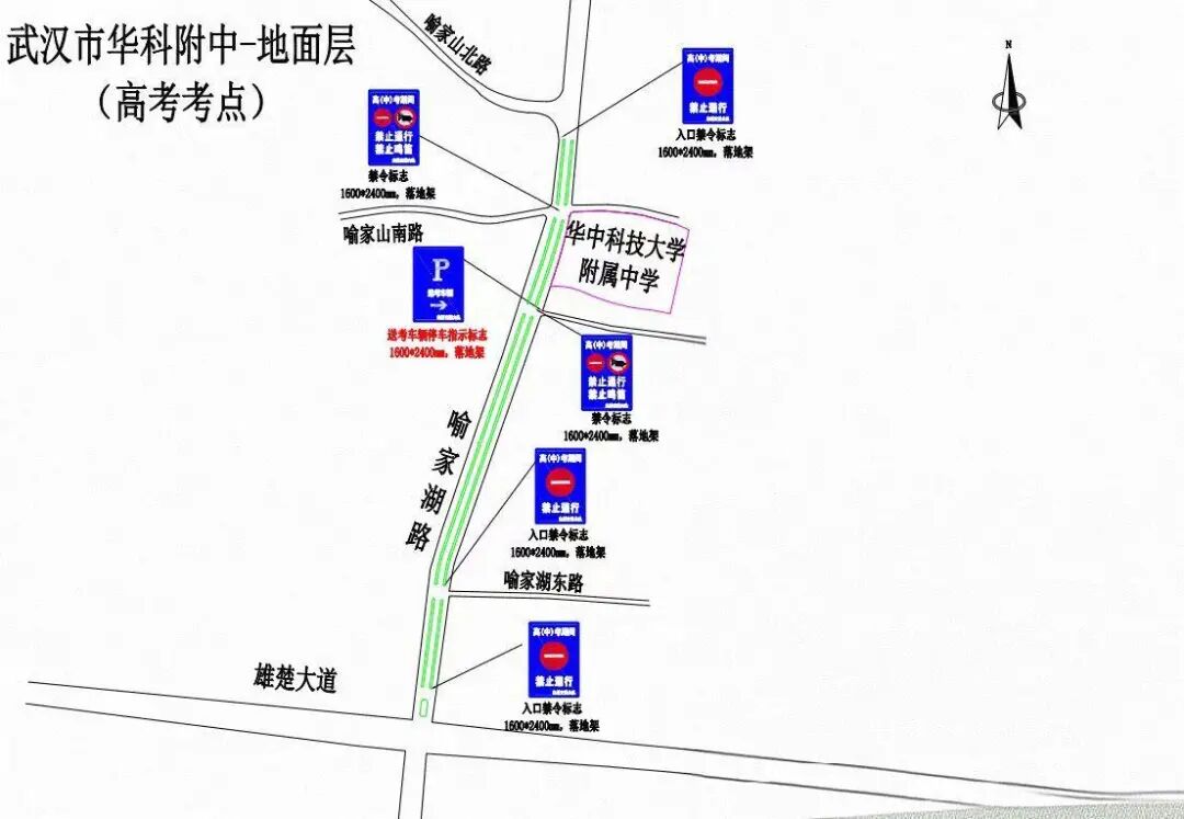 华科附中:喻家湖路(喻家山北路口至喻家湖东路口)区间路段实行临时交通管制,喻家湖高架团山隧道出口分流处、喻家湖路凌家山北路路口西临近考点分流处实行临时交通管制。