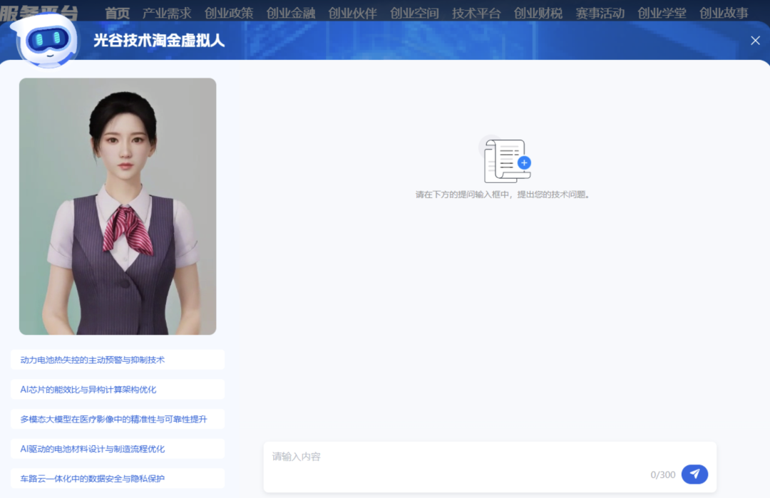 其中,“创业点子生成器”基于创业者专业背景、专利成果等信息生成创业方向,并匹配产业需求、政策及空间资源;“光谷技术淘金虚拟人”针对技术问题快速提供多路径解决方案及专利关联,将原本数天的文献调研压缩至几分钟;“技术预研导师”提供技术端至市场端多节点分析报告,帮助创业者评估技术可行性;“光谷创业小跟班”7x24小时全天候响应,针对企业注册、财税咨询、政策申报三个核心场景提供智能问答、办事指引等功能。
