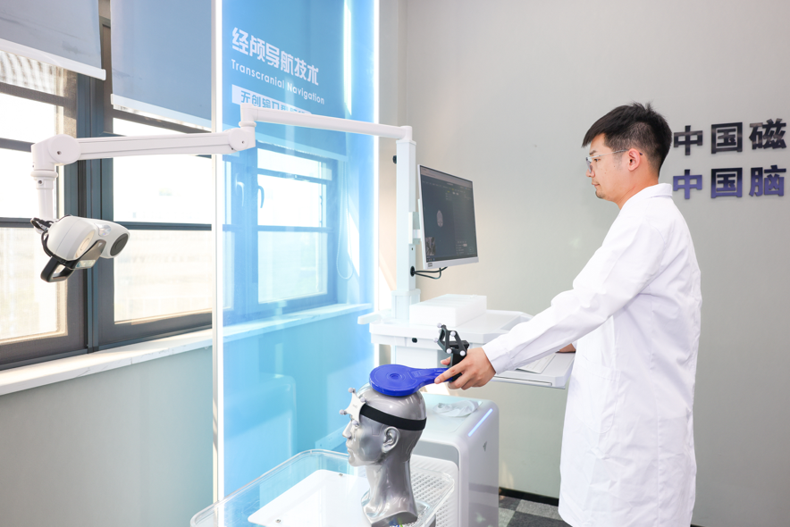 “马斯克的Neuralink采用有创脑机技术,解决的是‘少数人的重大疾病’问题,我们利用无创脑机技术,要治疗的是大众常见疾病。”蔡胜安说,2007年团队带着华中科技大学同济医院原创的经颅磁刺激技术开启产业化之路,历经18年自主研发,走出一条无创脑机接口差异化路径。