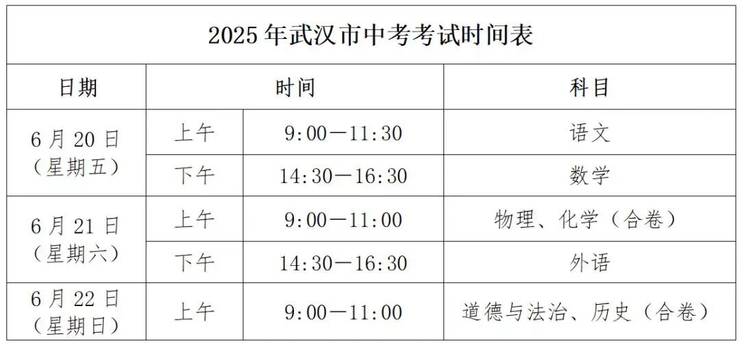 中考是选拔性考试,良好的考风考纪是考生切身利益和教育公平的基本保障。诚信乃为人之本,愿你以诚信为笔,书写青春答卷。我市不断完善考试管理措施,持续强化考试监督检查,严厉打击考试违规行为。考生进入考场时须接受金属探测器安全检查。考点将严控严管手机、智能手环、智能眼镜及无线接收传送设备等通信工具,手表也不得带入考点。手机等通信工具一旦带入考场,无论开机与否、使用与否都将被取消中考各科考试成绩。我市中考相关重要信息均在“武汉招考网”和“武汉招考”微信公众号上发布,请从正规渠道获取招生信息,不要将身份证号等个人信息透露他人或招生中介。对不法分子利用网络、小广告等兜售所谓“考题”“答案”“作弊工具”等,发布虚假招生宣传信息,要提高警惕切莫上当。