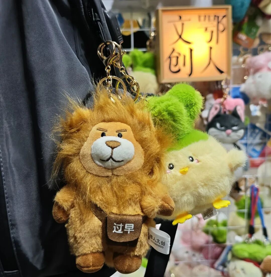 新品“搞莫狮”同样“武汉味”十足。它身背“过早”(意为“吃早饭”)包,其名字源自武汉方言“搞莫斯”(意为“干什么”)。