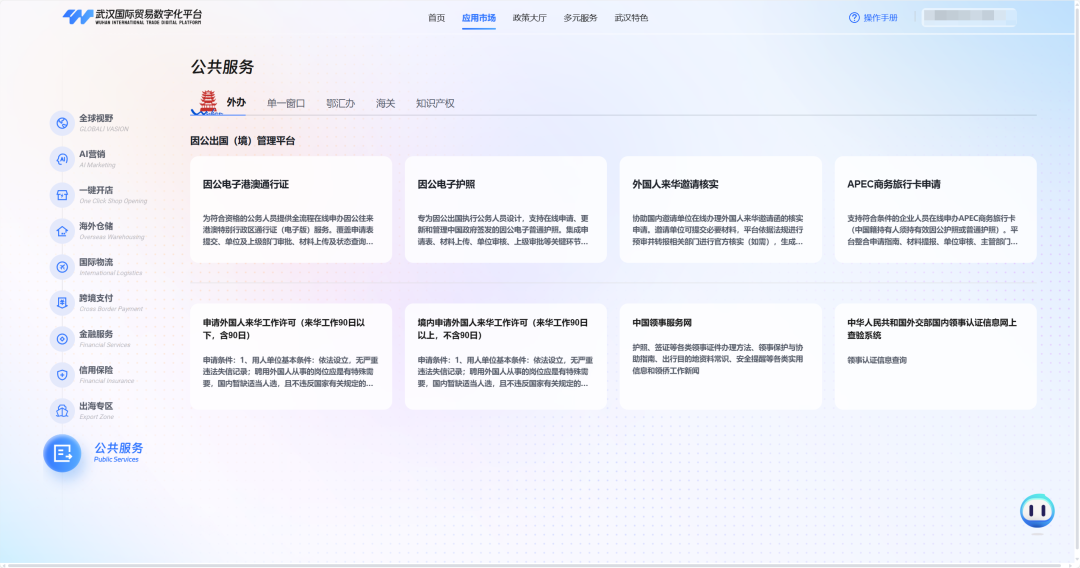 “过去,外贸企业办理相关业务,需要到武汉市委外办线下提交纸质材料,资质审核周期相对较长。”武汉市委外事办出国来华管理处相关负责人介绍,该功能上线后,将无缝对接武汉市外办线上管理平台,企业只需通过该功能在线提交申请,免除往返奔波。