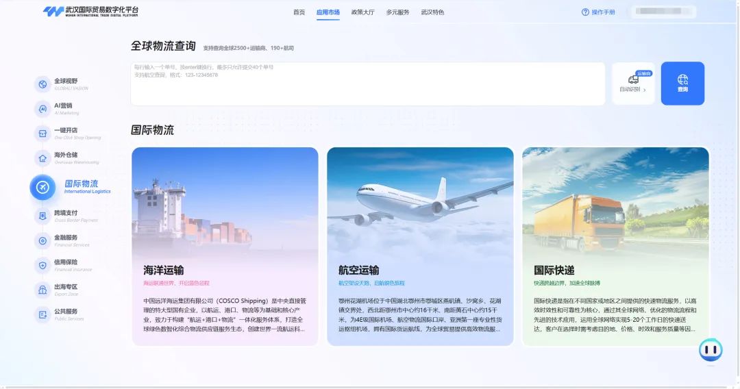武汉国际贸易数字化平台由武汉金控集团全资子公司长江国贸建设运营,自2024年9月上线以来,已汇集包括国际物流、通关申报、跨境支付、金融保险等90余项外贸服务。借助大数据分析,该平台还可为企业外贸经营状况“精准画像”,实现“一次注册、多重服务”。