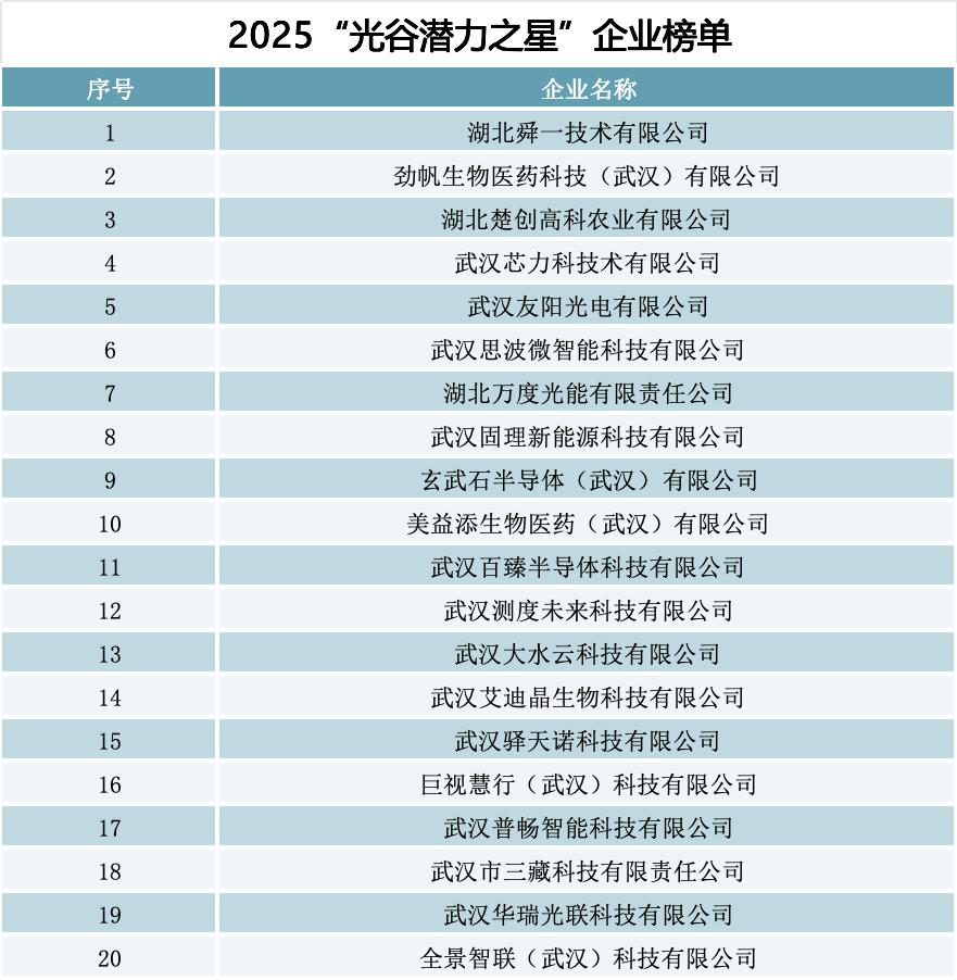 “潜力之星”榜单更侧重对颠覆性技术初创企业的挖掘,考量企业的团队实力、市场前景、商业模式、技术领先性、企业成长性等多个维度。上榜企业处于快速发展期,覆盖生物制药、半导体、激光、信息科学等产业,在所属产业领域具有一定技术先进性。未来,光谷将通过打造全周期科创金融服务体系,为企业提供从技术研发到市场拓展的全方位支持。