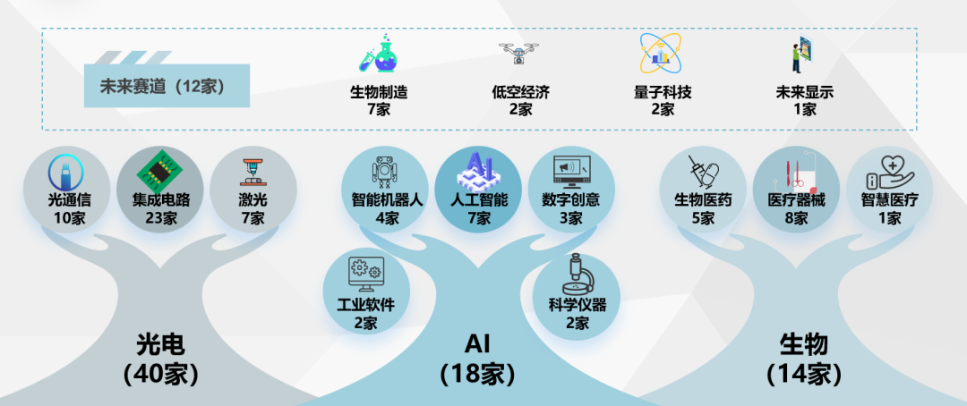 光谷创新发展研究院院长赵荣凯介绍,此次评选100家光谷“瞪羚精选”企业,在以往评选基础上更进一步,获评企业具有行业赛道新、创新能力强、投资价值高等特征,呈现“5678”特点,即企业平均研发人员占比超50%,平均每家企业近3年获得股权融资超6000万元,7成企业处于赛道第一梯队,超8成企业处于集成电路、智能机器人、生物制造前沿赛道。