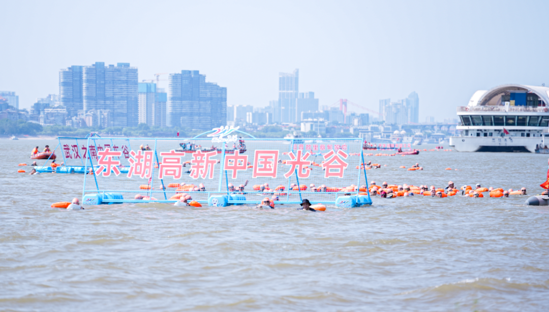 其中,光谷渡江方队由企业家、医生、工程师、学生等组成,年龄最小14岁,最大62岁,是最年轻的渡江方队。他们有的渡江数次,也有的首次挑战。今天,他们手牵手、共同推着“东湖高新 中国光谷”标识牌,怀揣不同梦想和期许,横渡长江。